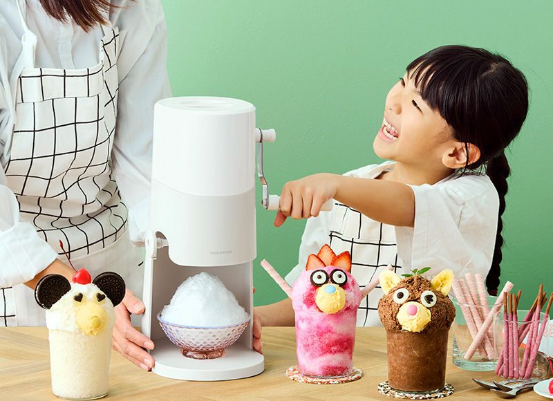 「電動ふわふわとろ雪かき氷器 DTS-B5」「手動ふわふわとろ雪かき氷器IS-TY-B5」「電動ふわふわとろ雪スティックかき氷器 DHCI-B5」