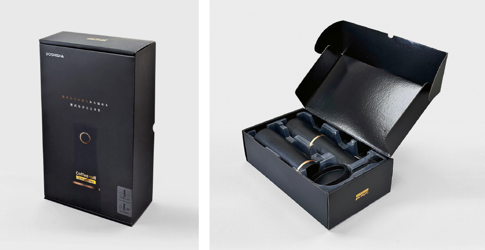 本体デザインに合わせた、マットブラックのシンプルなギフト仕様パッケージです。
