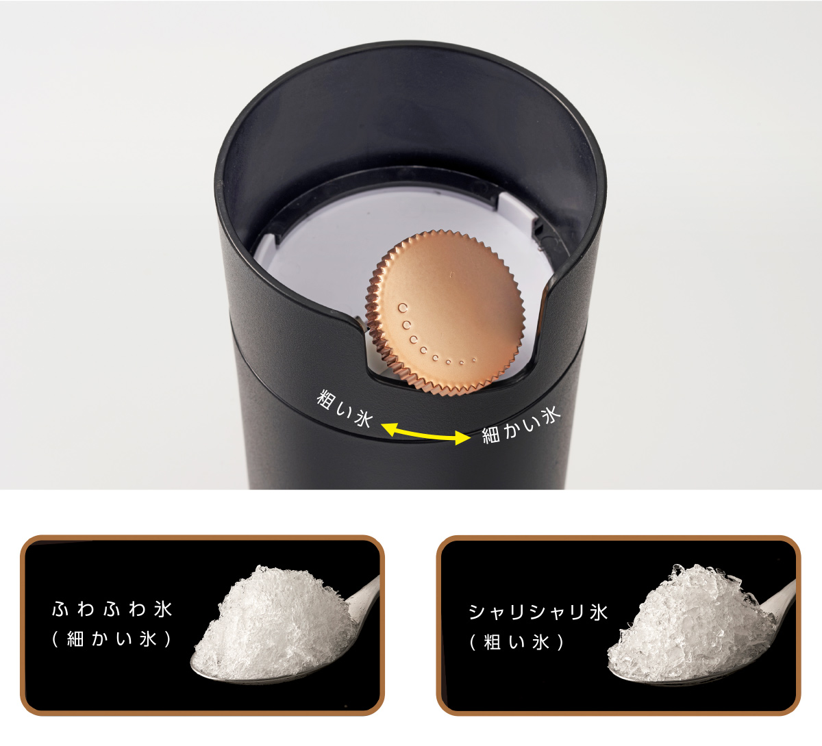 刃の高さを調節して氷の粗さ(ふわふわ~シャリシャリ)を変えることができます。