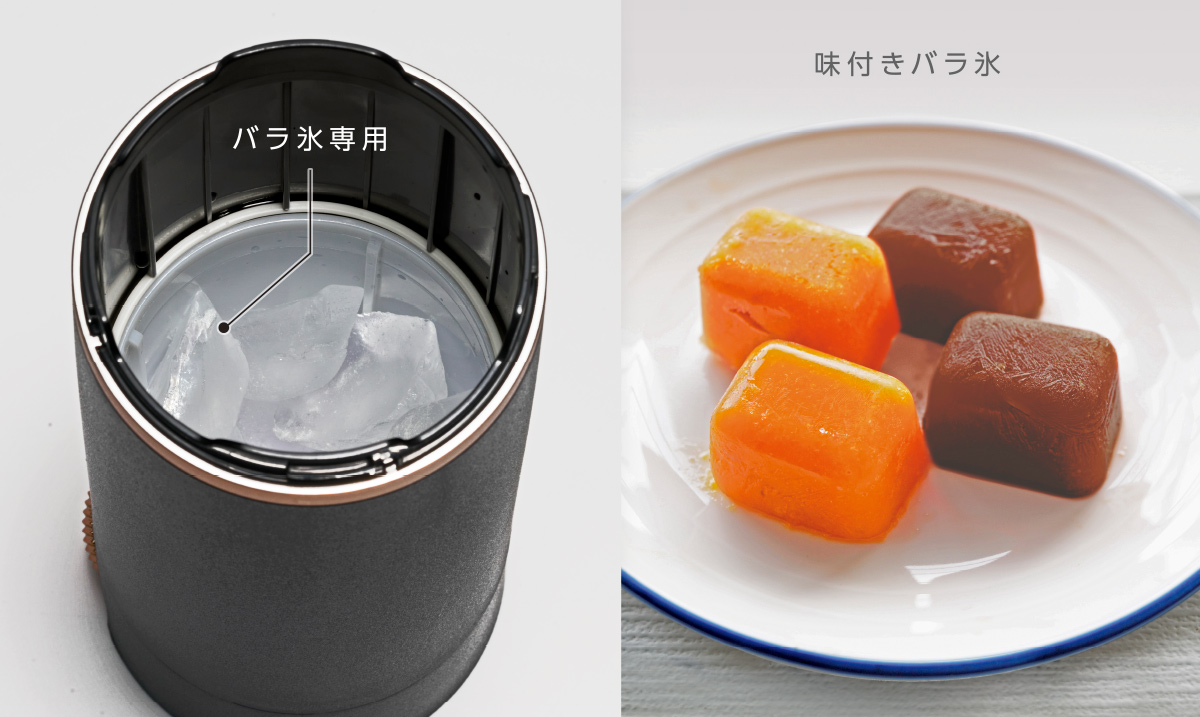 水を製氷皿で凍らせたバラ氷、練乳と牛乳で味付けしたミルク氷、コーヒー味のコーヒー氷、ジュースを凍らせた味付きバラ氷もふわふわに削ることができます。