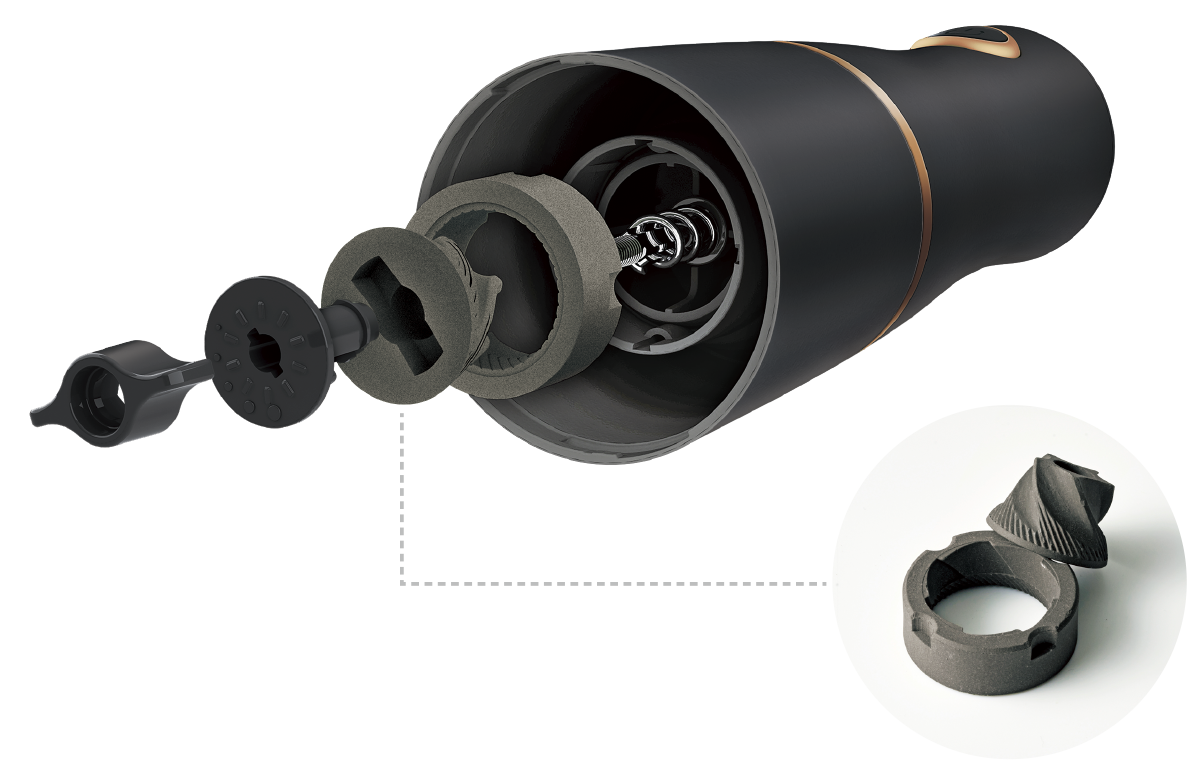 本体は高級感のあるマットブラック、リングパーツはゴールド。
