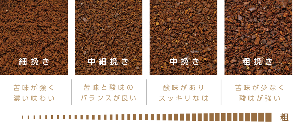 自分好みの味わいを作る「細挽き」から「粗挽き」までの粒度調節が可能です。
