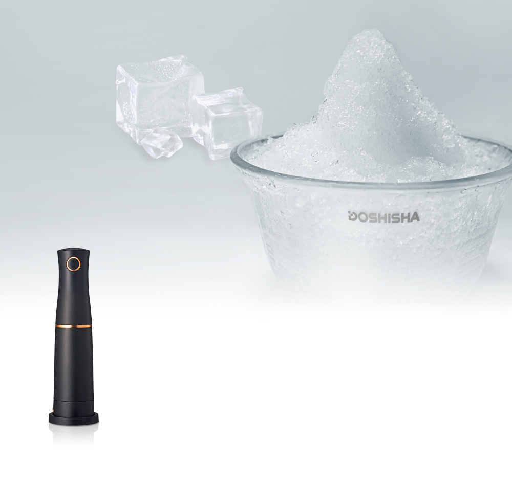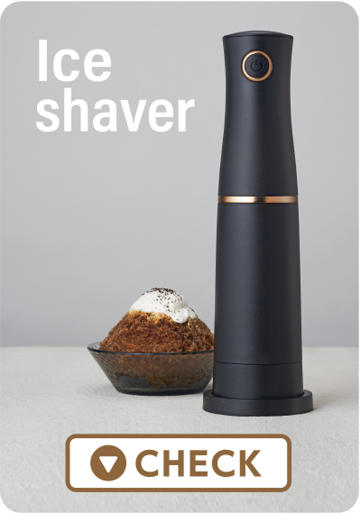 スティックタイプのかき氷器は、器を置くスペースをなくすことでグラスや大きいお皿等、器のサイズを選ばずに氷を削ることができます。