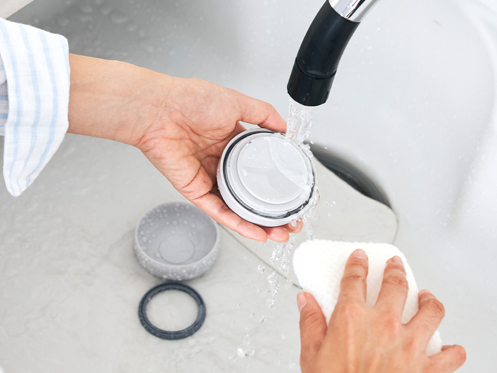 底フタを取り外して、隅々まで洗えて衛生的に使える。